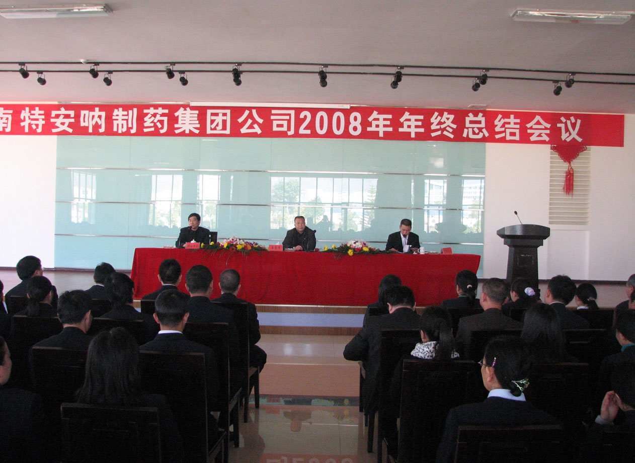 2009年1月22日下午,云南特安呐制药(集团)公司在三会议室召开2008年年终总结及表彰大会。会议由谭兆明副总裁主持,向昌万副总裁作年度工作报告。