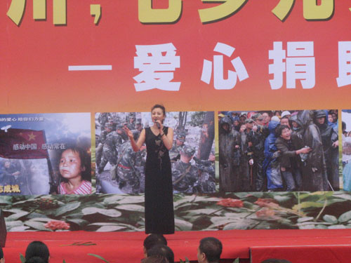 活动上,云南特安呐制药集团公司全体员工、文山州歌舞团、文山电视台记者、工作人员纷纷上台,把七乡儿女对灾区群众深深的祈福、同为中华儿女的深情厚义一一展现。特别是沈建、刘艳两位主持人和唐霞小朋友深情的诗朗诵《孩子,快,拉住妈妈的手》,