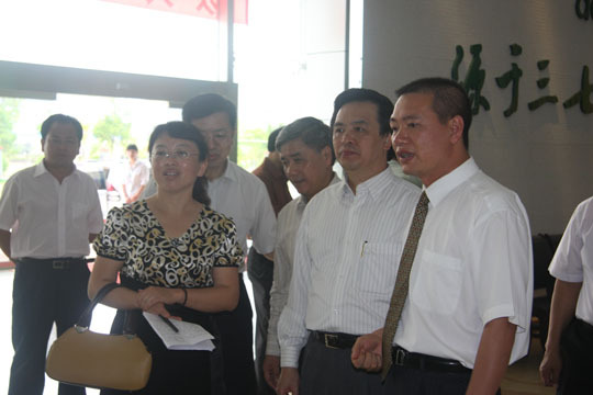 公司常务副总裁向昌万向客人介绍了公司自1994年成立以来的发展历程,并向客人介绍了公司以三七为原料开发的第一代到第四代产品。听了介绍和实地观看后,黄书记仔细地询问了“公司+基地+农户”的发展模式,并对公司以三七原料深加工带动农户增收致富表示了极大的兴趣和赞同。同时,黄书记还介绍了越南人民对人参和三七药效的广泛认同,而且越南人普遍喜欢中药材,建议文山三七企业到越南开店办厂,专门经营正宗的文山三七。