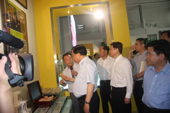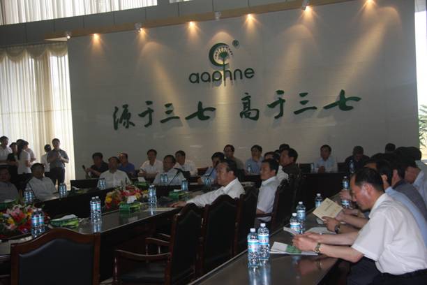 代表团一行先到文山三七国际交易中心——三七文化展示馆了解三七种植历史和三七产业发展情况,随后代表团来到特安呐公司展示厅。代表团团长甘肃省省委书记陆浩听取了公司唐总裁对特安呐公司情况的汇报。
