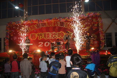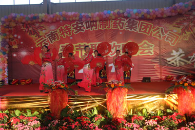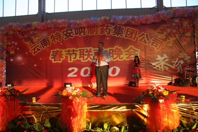 欢欢喜喜过大年,热热闹闹迎新春。2010年2月8日晚,云南特安呐制药集团公司内外张灯结彩,装饰一新,厂区上空回荡着欢快、热烈的新年音乐歌曲,处处洋溢着迎春贺岁的节日气氛。文山州、县领导及友好兄弟单位和特安呐公司全体员工共六百余人欢聚一堂,共贺2010年新春的到来,共享一年来收获的喜悦。
