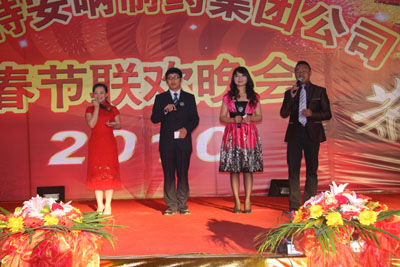 晚会首先由特安呐集团公司总裁唐修文发表新春贺词。唐总首先回顾了特安呐公司的历史轨迹,为特安呐过去所取的成绩感到欣慰和自豪;也对特安呐公司的未来做了展望。唐总振奋人心的讲话,让大家对特安呐公司未来充满信心和期盼,使大家坚定了为特安呐发展而团结奋斗的决心和意志。