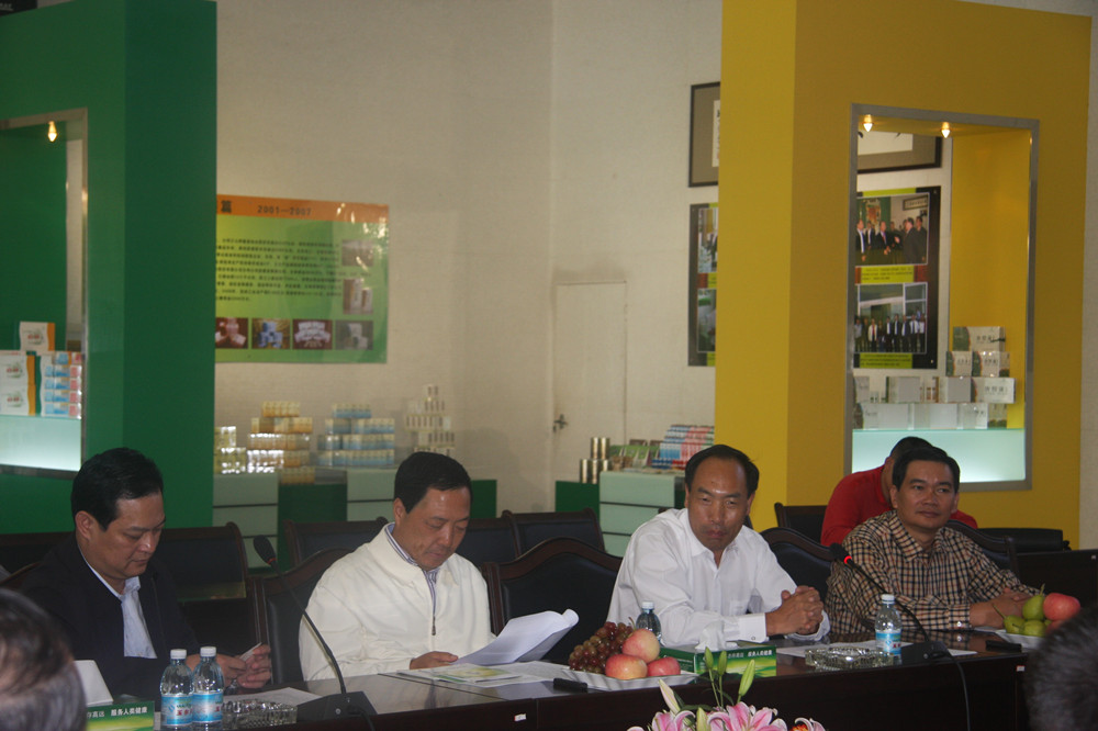 随后,宾主双方在展示厅举行简短的座谈会,闫总介绍了天士力集团的发展历程是一次次“由点到面”的突破和延伸,从最初的复方丹参滴丸技术发展到现代中药技术,再到现在的大健康理念。闫总说:大健康理念的提出,目的在于提高生命质量,最终让人“生得好,活得长,病得晚,走得乐”。在大健康产业发展中,天士力选择了若干“点”予以推进。目前,天士力正在推进“四个一”工程,即做好一盒药,做好一杯水,做好一杯茶,做好一个健康管理,并提出特安呐公司的发展也要应用“现代中药”的新概念开发三七,形成以“组分中药”为主导的中药开发新方法,构筑一条集药材种植、萃取、制剂和经营于一体的标准化产业链,在行业中创出“一味中药的产业经济”发展新模式。