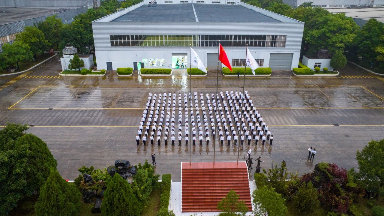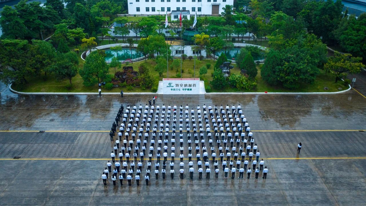 上午6:55,尽管天空飘着细雨,特安呐公司厂区内依然庄严地响起了雄壮激昂的《义勇军进行曲》。在雨幕的映衬下,鲜艳的五星红旗缓缓升起,迎风飘扬,更添几分庄重。在场的每一位干部职工神情肃穆,任凭雨点打湿衣襟,目光坚定地跟随国旗的每一个上升轨迹,脸上流露出无比的自豪与骄傲。这面由无数革命先烈用鲜血和生命铸就的旗帜,在雨水的洗礼下,不仅代表着祖国的尊严与荣耀,更激励着特安呐的干部职工不畏艰难,勇往直前,勇攀事业的高峰。