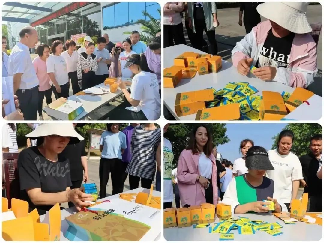 运送药品比赛,队员们找好搭档背靠背运公司“血塞通片”,“一二一......一二一......”有的匀速前进,有的向前快跑,有的配合默契,有的半路掉“产品”,各式各样的动作逗得大家哈哈大笑。