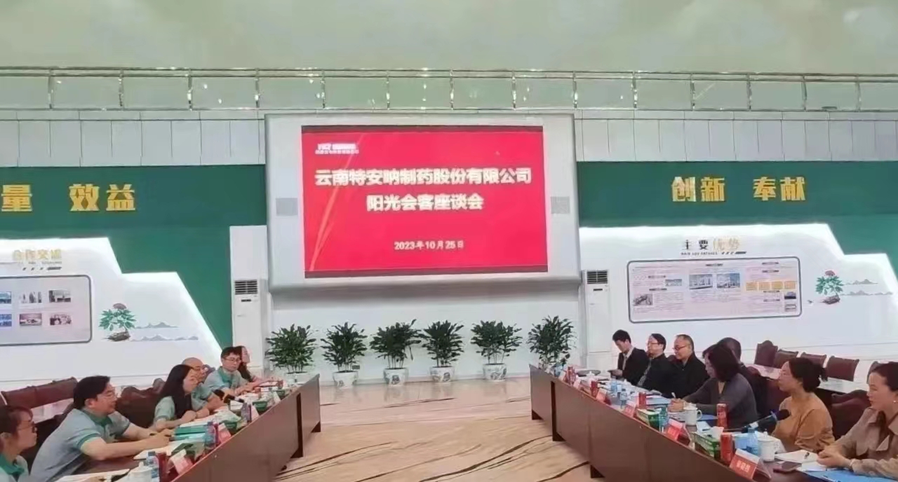 10月25日,特安呐公司召开阳光会客座谈会,党支部书记、副董事长、常务副总经理邹慧宁,总经理刘加强,副总经理郑传云及文山万丰毅三七销售有限公司、华润现代中药(昆明)有限公司等5家供应商代表参会。会议由党支部委员、总经理助理、纪检工作领导小组组长王武山主持。