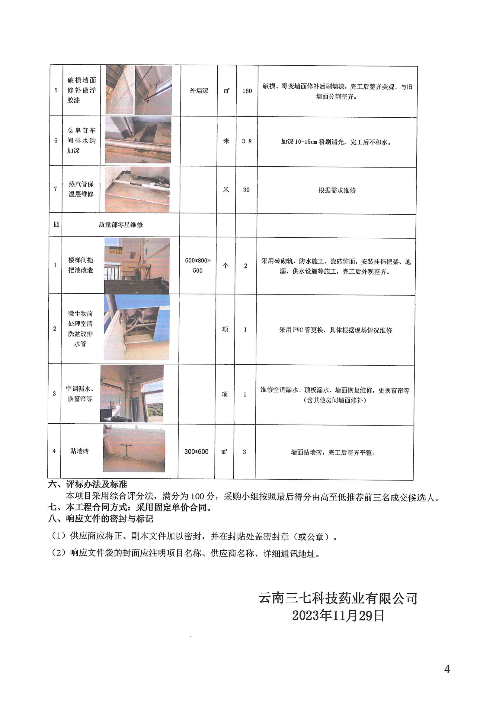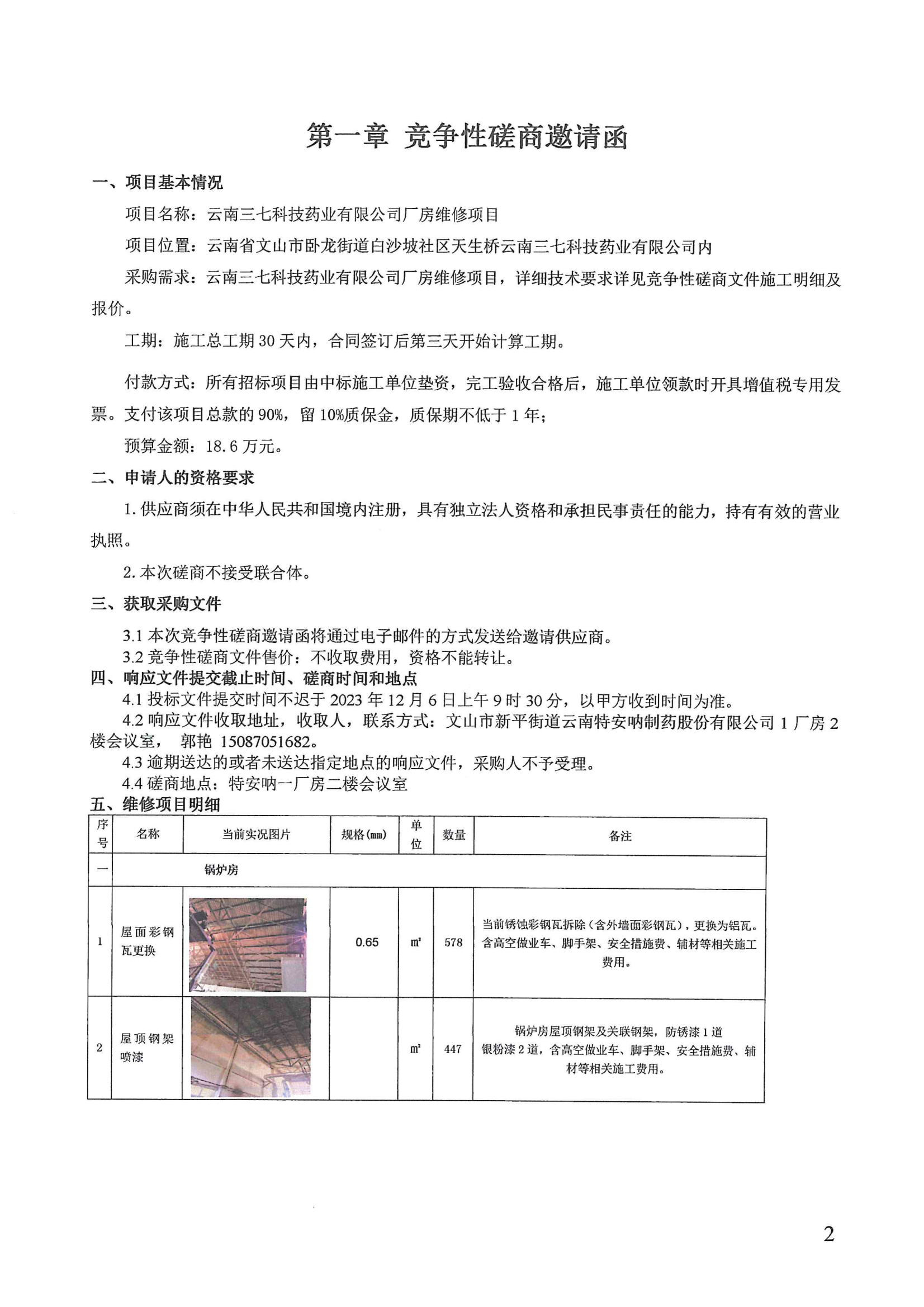 云南三七科技药业有限公司厂房维修项目竞争性磋商邀请