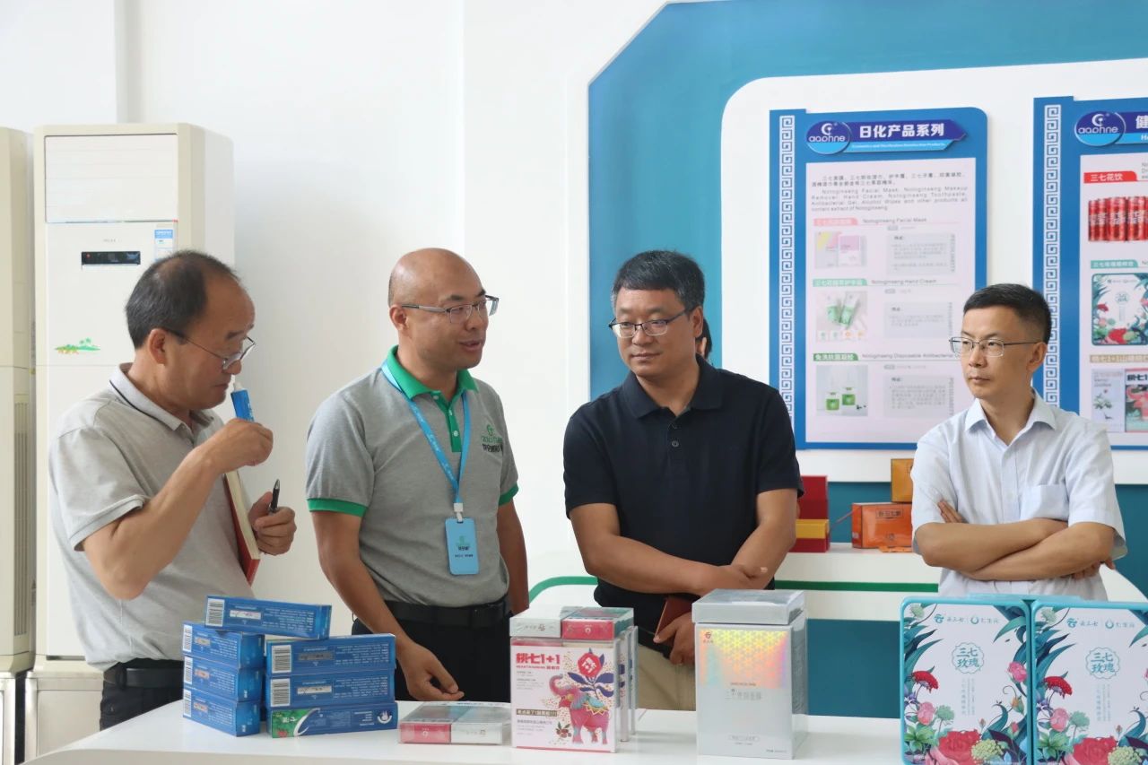 随后,熊仕禄一行来到特安呐公司,参观了公司展厅并观看了公司宣传片,对公司党建工作、企业文化、发展战略和产品体系等进行了深入了解,对公司血塞通系列、四个独家产品的发展势头给予高度肯定。
